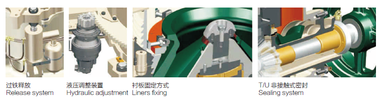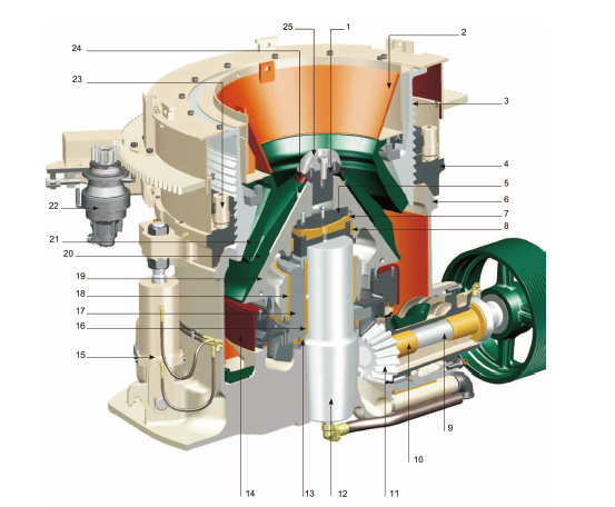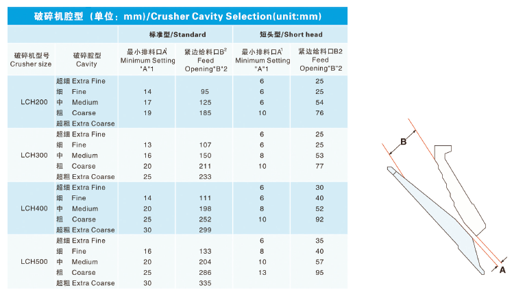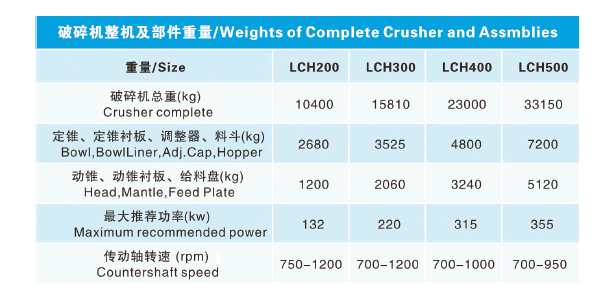 LCH series cone crushers can be converted from the finest to the coarsest simply by replacing the mantle, bowl liner, adapter ring and the wedge bolts.