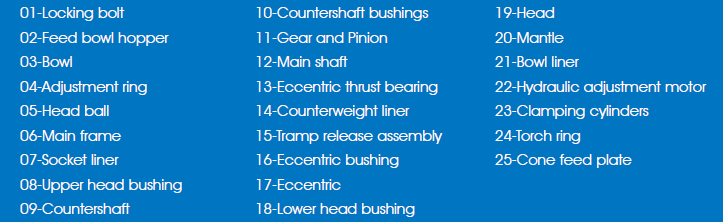 Bronze bushing used throughout provide superior load capability in the high-shock, dusty crushing environment. They’re low-cost, and easy to replace in the field with normal tools. LCH cone crushers are easy to disassemble. All components are accessible from the top or the side. The head and bowl can be