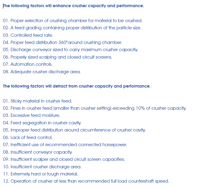 Cone crusher capacity charts are developed for use as an application tool to properly utilize the LCH crusher’s capabilities. The capacity figures shown apply to material weighing 1600kg per cubic meter. The crusher is one component of the circuit. As such, its performance is in part dependent on the proper